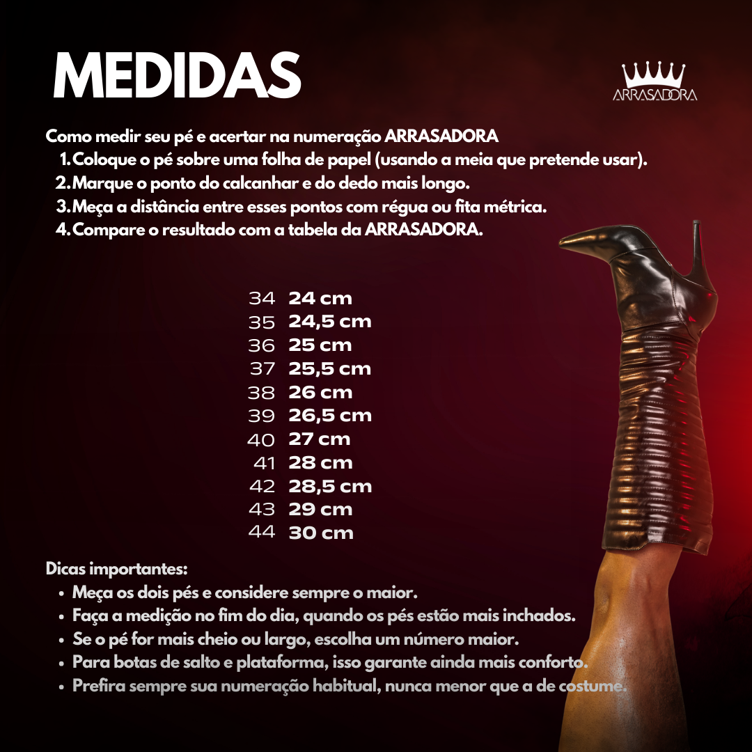 Publicado em 25/08/2025 | medir o pé, tabela de medidas, arrasadora