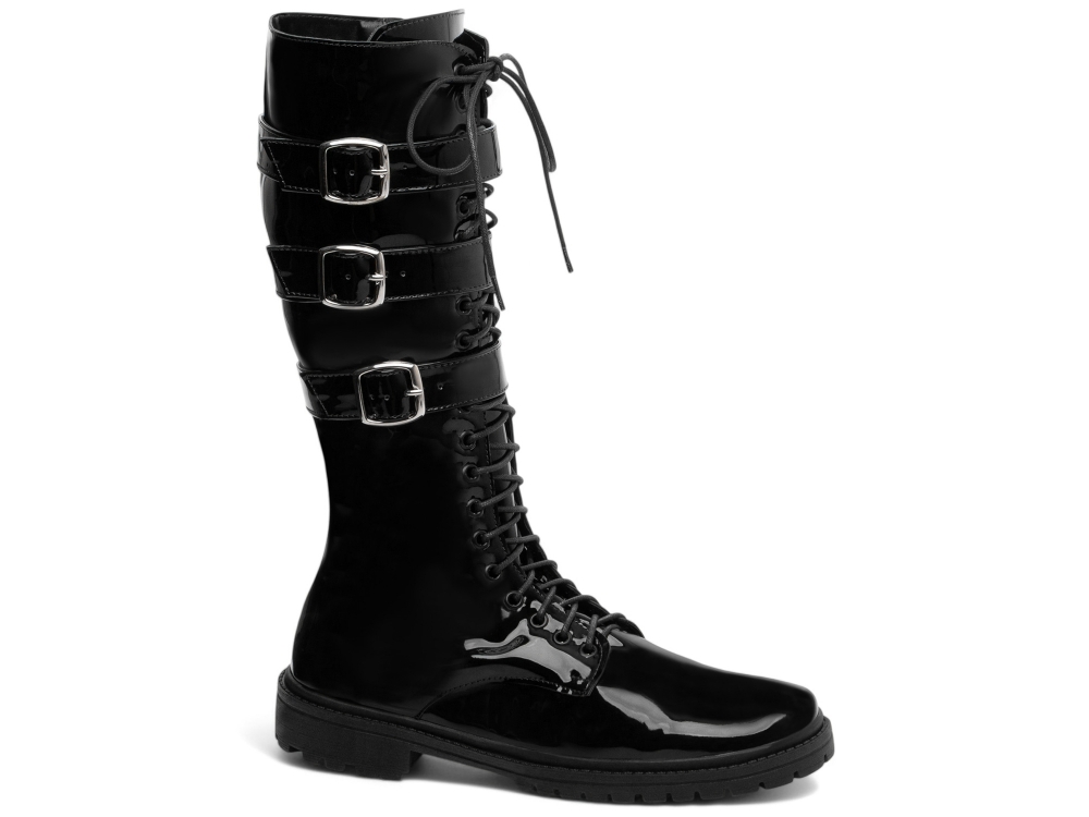 Estilo sem regras. O coturno de verniz preto da coleção Dark é a escolha perfeita para quem busca atitudes e atrações. Com cano alto, cadarços marcantes, fivelas e tiras modernas, ele combina com todos os estilos – do clássico ao ousado. A sola tratada garante conforto e presença em qualquer ocasião. Se é poder que você quer, é poder que você terá.